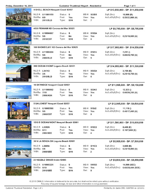 These are the highest priced Estate Homes Sold in Orange County in 2012 listed by all brokers in the CRMLS. Contact us for details or real estate questions.